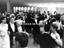 Formaat : 18 x 24 cm. - In de erehall in de decors van het Bal du Rat Mort "Cleopatra in Roma".
