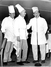 Formaat : 18 x 20 cm. - Rechts, Roger De RamΓ©e, directeur van de Kursaal. Derde van rechts, meesterkok Richard Parmentier.