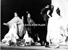 Formaat : 18 x 24 cm. - Een blijde Edith Piaf in gesprek met Mariemma. Mariemma en haar "Ballet de EspaΓ±a" traden op in het eerste gedeelte als huldeblijk aan Edith Piaf. In het midden, Roger De RamΓ©e, directeur van de Kursaal.