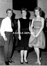 Formaat : 18 x 13 cm. - Danielle Darrieux in het gezelschap van Linda Kerby, zangeres bij het Kursaalorkest van Franz Lebrun en Claude Vega. Hij trad op in de nightclube "La Champagne" van 12-18/08/1960.