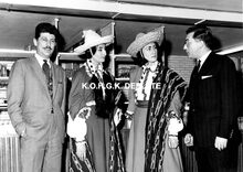Formaat : 13 x 18 cm. - Minister Renaat Van Elslande werd door het stadsbestuur ontvangen en nadien bracht hij een bezoek aan het Kursaal. We zien hem (rechts) in aanwezigheid van burgemeester Jan Piers, Rose d'Ivry en een aantal van haar leerlingen in de repetitieruimte van het Kursaal. Renaat Van Elslande was minister-onderstaatssecretaris voor Culturele zaken van september 1960 tot april 1961.