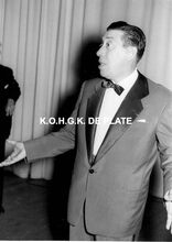 Formaat : 13 x 18 cm. - Hier in de nightclub "La Champagne". Met Roger De RamΓ©e, directeur van het Kursaal (rechts) en naast hem Guy BΓ©jart. Links, de man duidelijk zichtbaar met sigaret in de hand, RaymondΒ Devos. Zie ook : 2020/3304