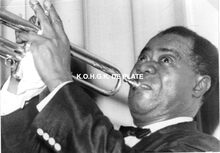 Formaat : 14,5 x 10,5 cm. - Louis Armstrong met achter hem, trombonist Trummy Young