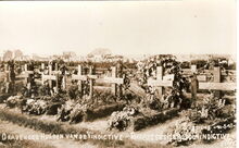 De graven van de zeven gesneuvelde Britten, waaronder haar commandant Godsal (rechts) op de begraafplaats aan de Stuiverstraat. Foto na de oorlog genomen.