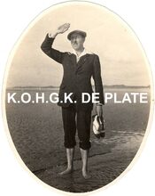 Formaat : 10 x 8 cm. - AndrΓ© Chocqueel aan het pootjebaden met zijn schoenen in de hand