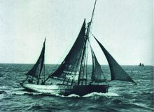Formaat : 9 x 12,5 cm. - Het lossen van vis. De man links is Jules Helsmoortel (vermeld op foto)
