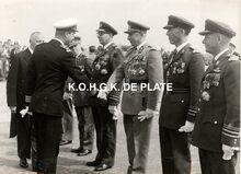 Formaat : 13 x 18 cm. - Prins Albert wordt begroet door minister P.W. Segers en fregatkapitien Julius Van Dyck.