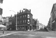 Het CafΓ© du Lion gelegen in de Kapellestraat nr. 90. Het gebouw werd in 1962-1963 gesloopt voor de bouw van het Burlington Hotel (hoek Kapellestraat - Vindictivelaan).