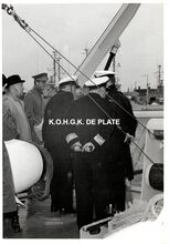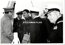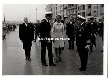 Formaat : 12,5 x 18 cm. - Koning Boudewijn in gesprek. Rechts, divisieadmiraal van de Zeemacht, L. Lurquin.