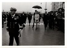 Formaat : 13 x 18 cm. - Vooraan, L. Lurquin, divisieadmiraal van de Zeemacht. Links naast de prinses, minister P.W. Segers en rechts, de provinciegouverneur van West-Vlaanderen, Pierre van Outryve d'Ydewalle.
