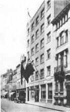 De kristal- en porseleinwinkel "Au Grand DΓ©pΓ΄t" van de heren Emile en Fernand Servais in de Kapellestraat nr. 39. In dit huis werd Raoul Servais geboren