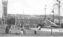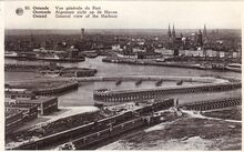 Het derde Handelsdok met de scheepswerven. Op de voorgrond rechts, een vissersboot op stapel