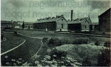 2 foto's, formaat : 15 x 10 cm. -Β Een algemeen zicht van enkele paviljoenen met in het midden de kapel