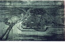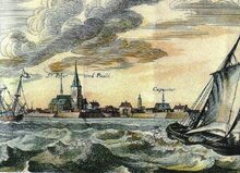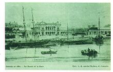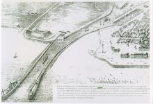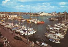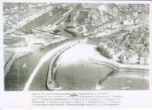 Postkaart A.V.M. - Het eerste handelsdok en op de achtergrond het Zeestation. Het lichtschip "Westhinder" als restaurant.