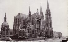 Zwart/wit foto Antony nr. 060440-2. Formaat : 17,5 x 23,5 cm. β De heer Libaert (gepensioneerde postbode uit het Ieperse)Β en Ernestine Willems traden in het huwelijk in de Onze-Lieve-Vrouw Onbevlekte Ontvangenis op het Hazegras. Foto genomen tijdens de plechtigheid in de kerk.