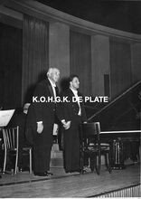 Formaat : 18 x 13 cm. - De concertzaal. Walter Gieseking, piano, met het Nationaal Orkest van BelgiΓ« onder de leiding van Edouard Van Remoortel.