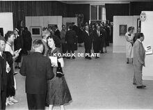 Formaat : 13 x 18 cm. - 2 exemplaren. - Β De vernissage. Derde van rechts, Roger De RamΓ©e, directeur van het Kursaal.