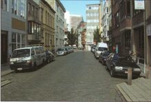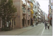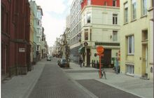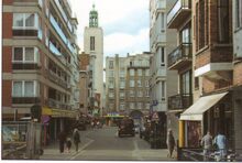 Tropic T 431. - Ostende oender woater 1953. - Foto's : (1) De Langestraat, met links, de Anglicaanse kerk en rechts op de hoek met de Londenstraat, café "Old England" en (2) op de hoek met de Londenstraat, Irish bar "Flanagans"