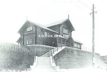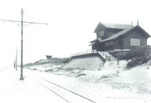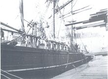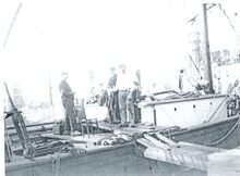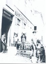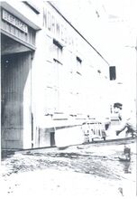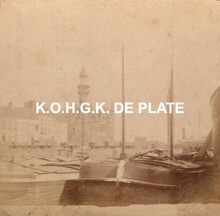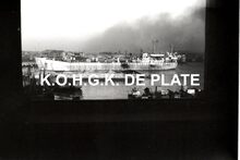 Formaat : 8 x 8 cm. - In de achtergrond het zeevaartcommissariaat
