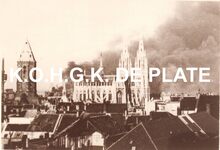 Formaat : 8 x 8 cm. Op de hoek de stallen van de koning en een primitieve kazerne voor artillerie (vermeld op de foto)