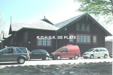 Formaat : 13,5 x10 cm. - Het beeld staat in de ingang van de brandweerkazerne