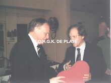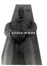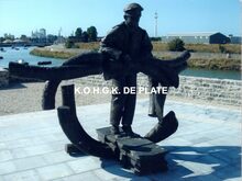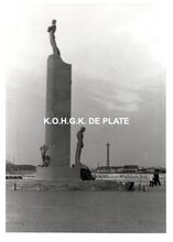 Formaat : 10 x 13,5 cΓΉ. - 3910/1102Ontwerp van Willy Bosschem en uitgevoerd door de leerlingen van de keramiekklas van de Oostendse kunstacademie. Ingehuldigd op 20/04/1985. Oorspronkelijk ingemetseld in de muur, nu losstaand.