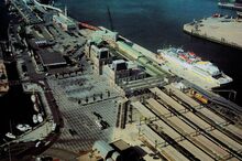 Tropic T 300. - Panorama van de omgeving van het Zeestation. Een cruiseschip ligt aan de kaai