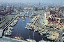 Tropic T 302. - De Mercator jachthaven bestaande uit het eerste en tweede handelsdok. Gelegen langs, de Vindictivelaan (rechts) en de Leopold III- laan (links). In het tweede handelsdok ligt het zeil- en schoolschip "Mercator", nu museum. Op het einde, het stadhuis, gelegen langs de Leopold II-laan.