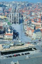 Tropic T 349. - Panorama van de omgeving van de Koningin Astridlaan. Rechts, bibliotheek Kris Lambert. Links, het Thermae Palace Hotel en ernaast het stedelijk zwembad. Wat verder de Koninklijke Villa en de Japanse tuin.