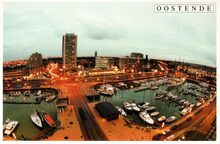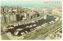 Tropic T 122. - Vooraan, het kruispunt Elisabethlaan en Gistelsesteenweg. Links, het Jetaircenter en de wijk Meiboom Β en het Maria-Hendrikapark. Op de achtergrond, de Vuurtorenwijk en de Spuikom