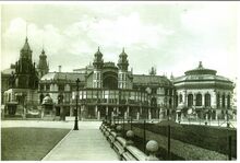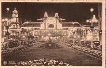 Nels. Bromurite. Ern. Thill, Bruxelles, Bromurite, NΒ° 31. - Ostende. Oostende - Kursaal. - De zuidgevel van het derdeΒ Kursaal gezien vanuit de Leopoldlaan. De sierlijke straatlantaarnsΒ uit het interbellum zijn uit ons straatbeeld verdwenen. Let op de altijd verzorgde bloemenperken.