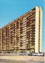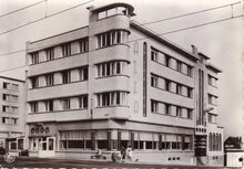 Kruger 933/73. - De zuidgevel van het vierde Kursaal, gezien vanuit de Leopold II-laan. Let op de altijd verzorgde bloemenperken