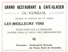 DΓ©jeuners sur la terrasse. Diners dans la salle des ambassadeurs. Direction : Matheudi & Hertault du Palace Hotel de Bruxelles.