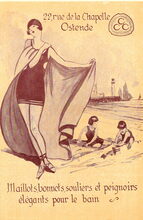 Maillots, bonnets, souliers et peignoirs Γ©lΓ©gants pour le bain.