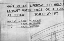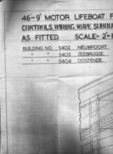 Plan BB 159/48. Motor lifeboat for Belgian ministry of marine. Controls wiring wave subduing & fire extinguishing