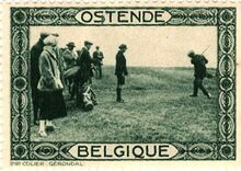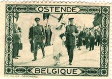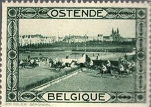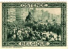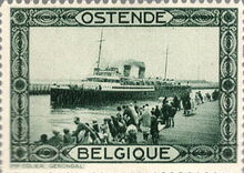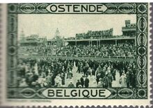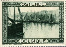 in blauw en groen met op de voorzijde in de rechterbovenhoek het wapen van Oostende