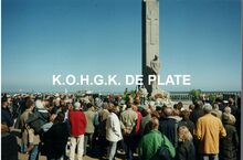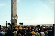 Formaat : 10 x 15 cm. - Jaarlijkse vissershulde aanΒ het Monument der Zeelieden op het Zeeheldenplein. Onze vereniging legt elk jaar een bloemenkrans neer.