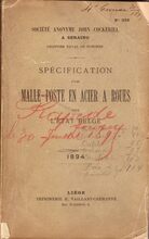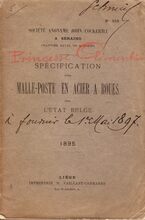Spécification d'une Malle-poste en acier à roues pour l'etat Belge 1894