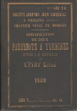 Spécification de deux paquebots à turbines pour le service de l'état Belge 1912.( 2 x)