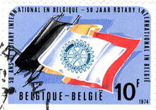 Formaat : 2,5 x 3,5 cm. Uitgegeven naar aanleiding van 50 jaar Rotary International 1974