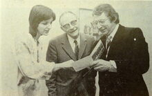 FΓ©lix Piette, Prins Carnaval van Mariakerke, verkozen tot Prins Carnaval van West-Vlaanderen. Hier in het gezelschap van de schepenen Jan Felix (rechts) en Alfons Laridon