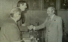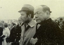 Foto : Pierre Beauduin op de Wellingtonrenbaan in gezelschap van de heer Robinson. Aanvulling : 15/11/1974, p.4