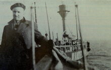 Foto : Roger Crouquet nabij het lichtschip "Wandelaar" naar aanleiding van een reportage
