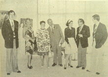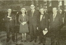Foto : De heer en mevrouw J.C. Van Biervliet en de heer en mevrouw de Pesseroy vertegenwoordigen de S.A. Horetex. Zij baten nu de Koninklijke Villa uit als hotel en restaurant "De Oostendse Compagnie"