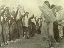 2 foto's : (1) Misviering aan boord van de "Mercator" en (2) een groep uit de Ommegang