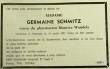 Georgette Hillewaere. Echtgenote van Fernand Vanheste. Geboren te Oostende op 5 januari 1907. Fernand Vanheste. Echtgenoot van Georgette Hillewaere. Geboren te Oostende op 15 april 1906. Beiden overleden ten gevolge van een luchtbombardement op 29 april 1942