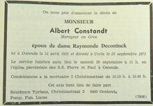 Oscar Lams. Echtgenoot van Jeanne Malefason. Geboren te Oostende op 9 mei 1920. Maurice Vandecasteele. Echtgenoot van Yvonne De Cuyper. Geboren te Bredene op 3 maart 1902. August Vandenbussche. Geboren te Oostende op 19 juli 1889. Edward Vanoverbeke. Echtgenoot van Elisa Eerebout. Geboren te Stene op 18 mei 1906.
