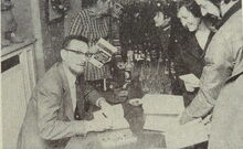 2 foto's : (1) Fernand Monteny en (2) De verbranding van de pop (Tjannie Carbon) op het einde van de Cimateirestoet op de Kadzand- en Bonenstraat