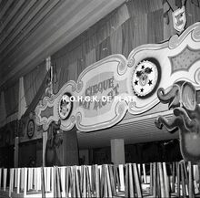 Negatief : 6 x 5,5 cm. - Thema : "Het Grote Circus" = "Les GensΒ du Voyage". De decors waren van Willy Bosschem en Raymond Pyson
