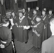 Negatief : 6 x 5,5 cm. - Schepen Henri Edebau wordt lid van de "Orde van Kloeffe". Hier op het 1e groot Kloeffebal in dancing Carnegie